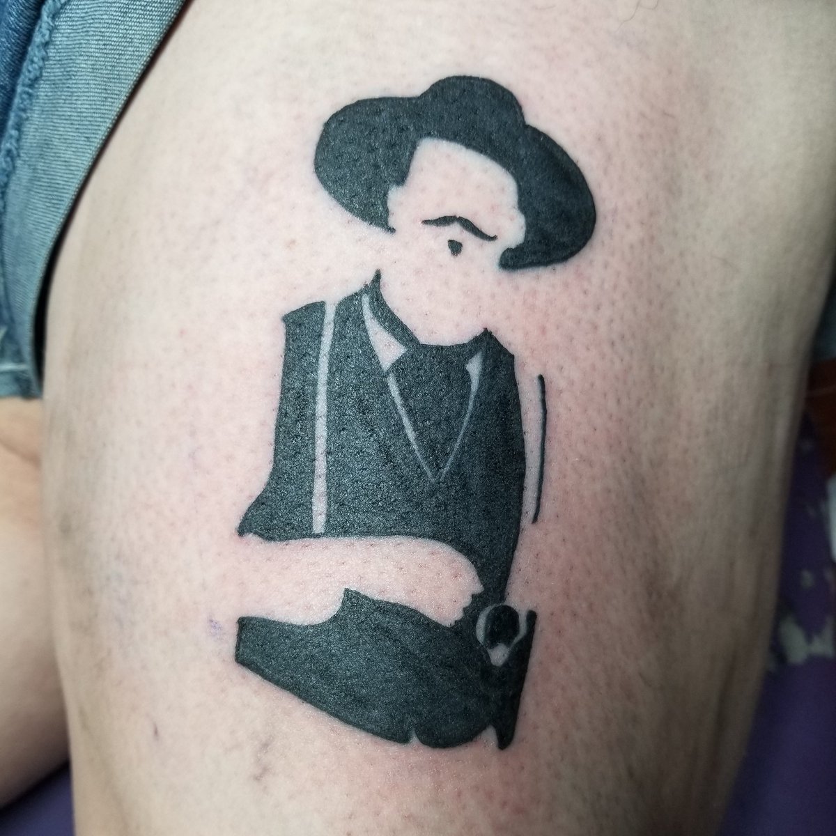 3. Portrait tattoo of the actual historic Doc Holliday – or is it? In monocolor, the name of John Holliday and birth/death years added.